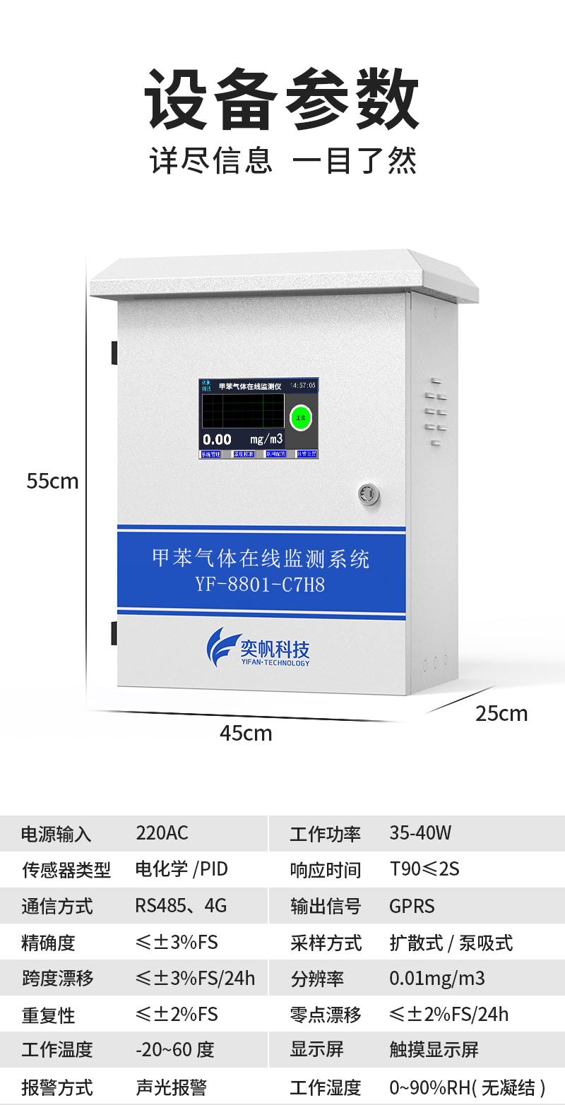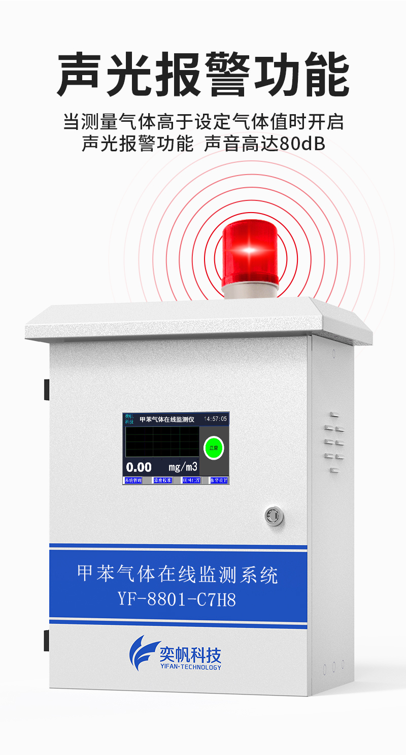 奕帆甲苯在線監(jiān)測系統(tǒng),由奕帆科技自主研發(fā),適用于連續(xù)監(jiān)測無組織環(huán)境空氣中的甲苯等有機(jī)化合物,產(chǎn)品配備高精度傳感器,采用泵吸式采樣監(jiān)測,內(nèi)置多重預(yù)處系統(tǒng),包括除塵除水過濾等,可以很好的保護(hù)傳感器不受侵害,保證監(jiān)測數(shù)據(jù)的準(zhǔn)確穩(wěn)定。奕帆甲苯在線監(jiān)測系統(tǒng)具備24小時連續(xù)監(jiān)測、超標(biāo)報警、數(shù)據(jù)儲存等功能,同時數(shù)據(jù)還可對接環(huán)保平臺。