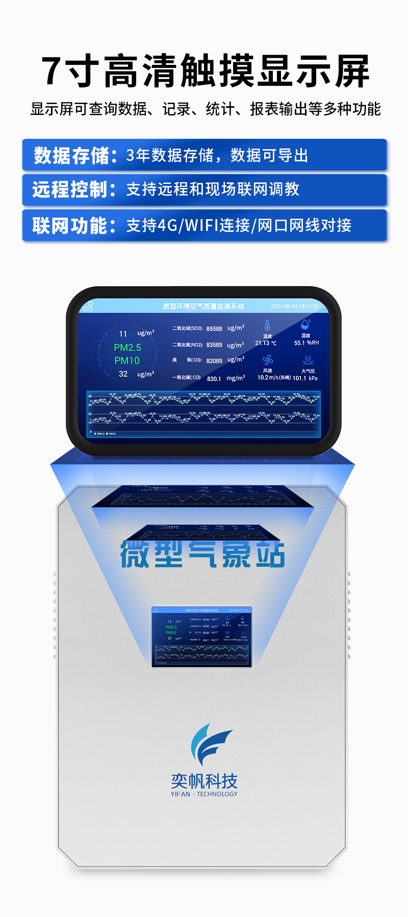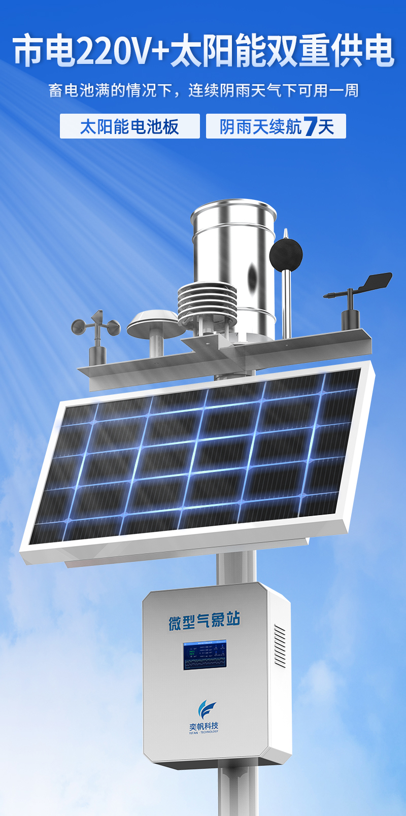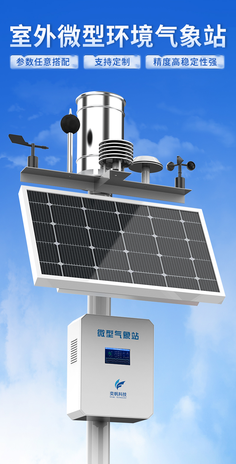 YF-8801-QX奕帆科技微型氣象站是按照國際氣象觀測標(biāo)準(zhǔn),研究而開發(fā)生產(chǎn)的多要素自動觀測站??杀O(jiān)測空氣溫度、濕度、風(fēng)向、風(fēng)速、氣壓、雨量、光照強(qiáng)度、總輻射等常規(guī)氣象要素,可在無人值守的惡劣環(huán)境下全天候全自動正常運行,可擴(kuò)展對氣象參數(shù)進(jìn)行監(jiān)測。同時結(jié)合物聯(lián)網(wǎng)、智能采集系統(tǒng)、地理信息系統(tǒng)、動態(tài)圖表系統(tǒng)等先進(jìn)技術(shù)為環(huán)保部門的環(huán)境決策、環(huán)境管理、污染防治提供詳實的數(shù)據(jù)資料和科學(xué)依據(jù)。